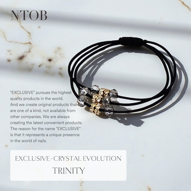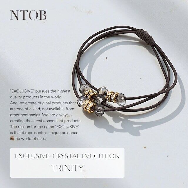 ブレスレットとしても、ヘアジュエリーとしても、自由なスタイルでお愉しみいただけます。 【シリーズ】クリスタル・エボリューション 【品名】トリニティ 【カラー】5色 【サイズ】フリー(伸縮性あり) 【素材】クリスタルガラス、合金、ナイロン、ポリウレタン 【付属品】タグ・袋